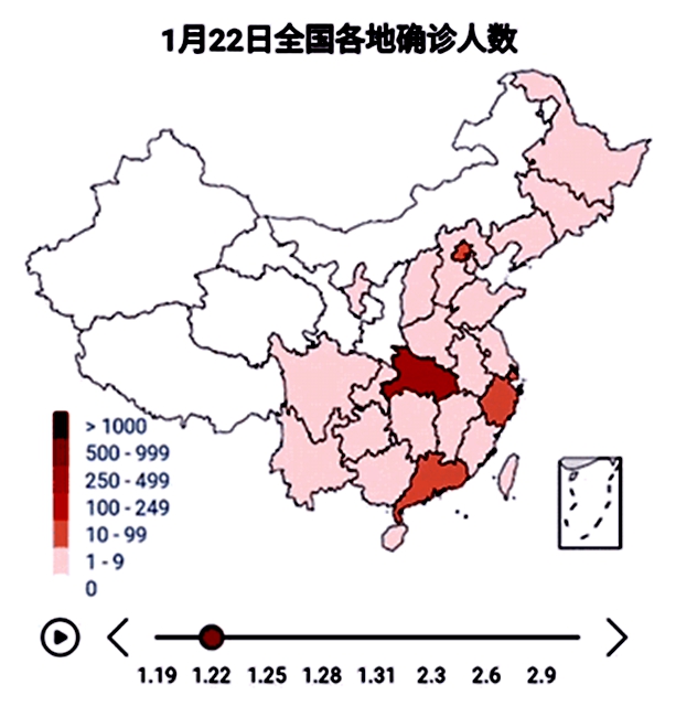 全国新冠肺炎确诊人数随时间变化的分布地图