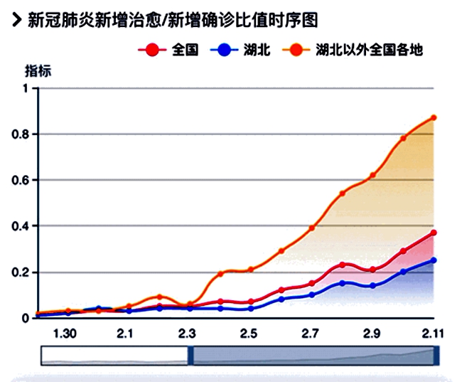 新冠肺炎每日新增治愈人数与新增确诊人数比值随时间变化的时序图