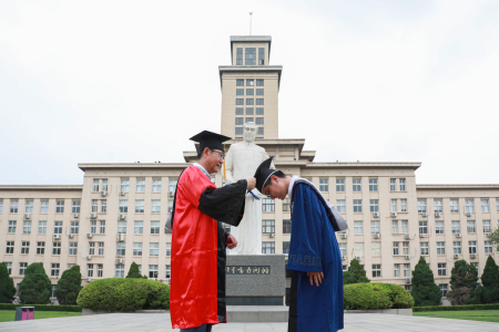 早上7点30分,学院硕博在校毕业生及学院领导、部分研究生导师来到总理像前进行合影留念,共同记录2020届毕业生在南开最后的时光。欢欣的笑容洋溢在每个人的脸上,学有所成的喜悦削弱了别离的伤感。空中飞动的无人机、一声声清脆的快门声,将这一切默默记录。即使离开校园,毕业生们也会将自己在南开所走过的岁月永远放在心上,带着自己在这里的收获与感动,带着对老师与同学的祝愿与思念走上今后人生旅途。聚散天涯,依依南开,永远不变的是对母校的这份浓厚深情。