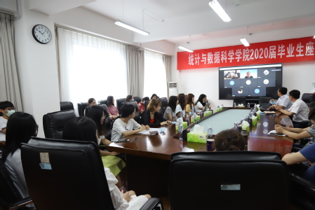 上午10点整,学院2020届毕业生座谈会在二楼会议室准时召开。学院毕业生代表、全体党政班子成员通过线上线下相结合的方式参加了此次座谈。
