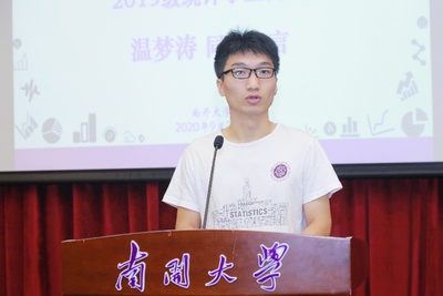 研究生老生代表、2019级统计学博士生温梦涛与学弟学妹们分享了自己专业学习的心得体会并针对不同类型的研究生分别给出了建议。他认为,研究生阶段应尽早确立自己的目标,保留足够的时间为未来做准备。此外能够“坐得住”也是学习、科研、工作中必备的能力。