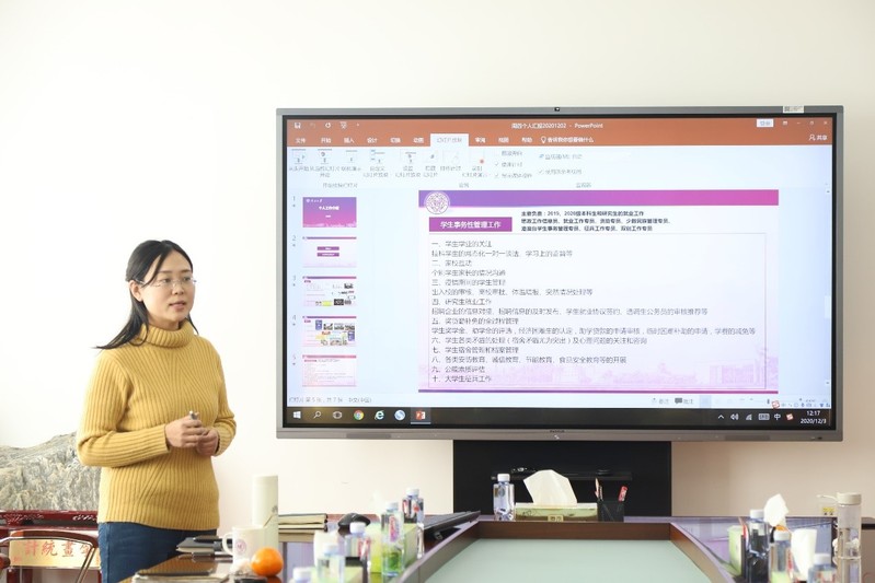 团委书记高春燕就如何开展学生思想理论教育和价值引领、心理健康教育与咨询工作,如何帮助学生树立正确的世界观、人生观、价值观进行了介绍。搞好学生的日常行为管理,需掌握学生的思想、学习、工作和状况,及时帮他们解决各方面的实际困难。希望学生有问题及时向自己和老师们反映沟通,希望得到各位任课教师支持,在三全育人的实践中给予学生更多的指导与帮助。