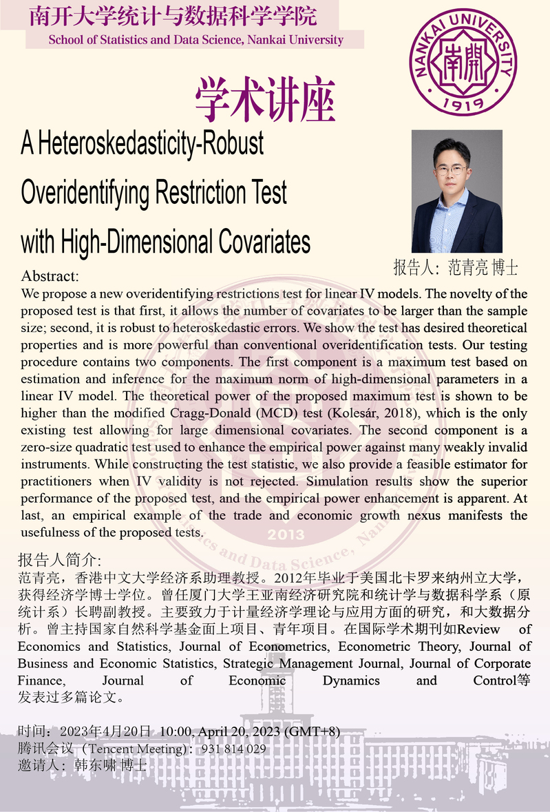 A Heteroskedasticity-Robust Overidentifying Restriction Test with High-Dimensional Covariates(范青亮)