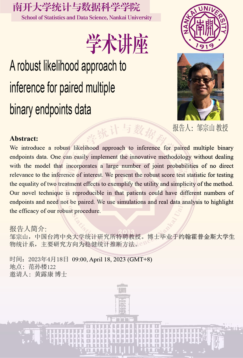 A robust likelihood approach to inference for paired multiple binary endpoints data (邹宗山)