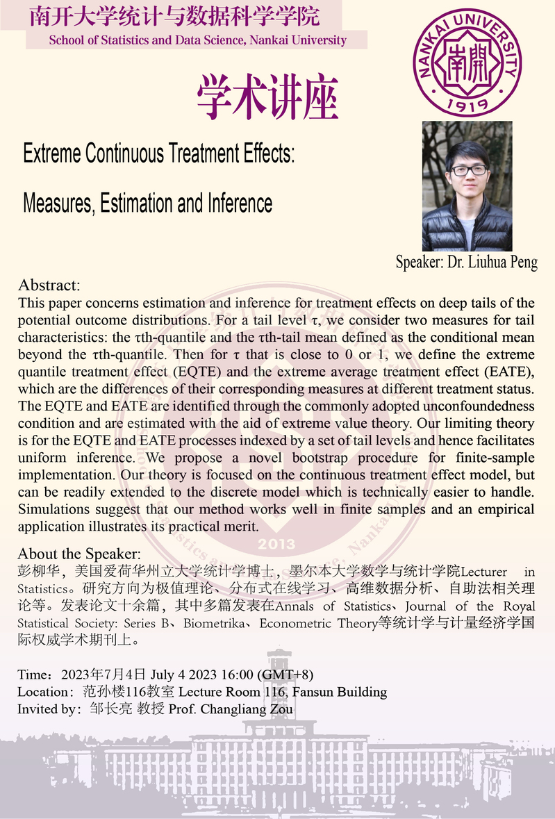 Extreme Continuous Treatment Effects: Measures, Estimation and Inference(彭柳华)