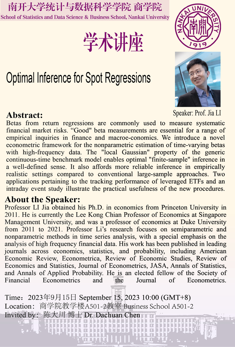 Optimal Inference for Spot Regressions(李嘉)