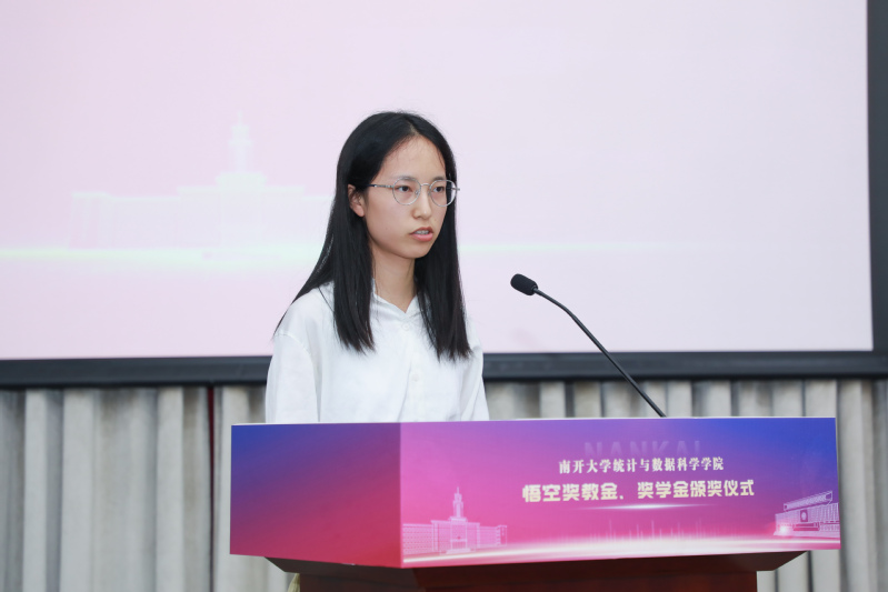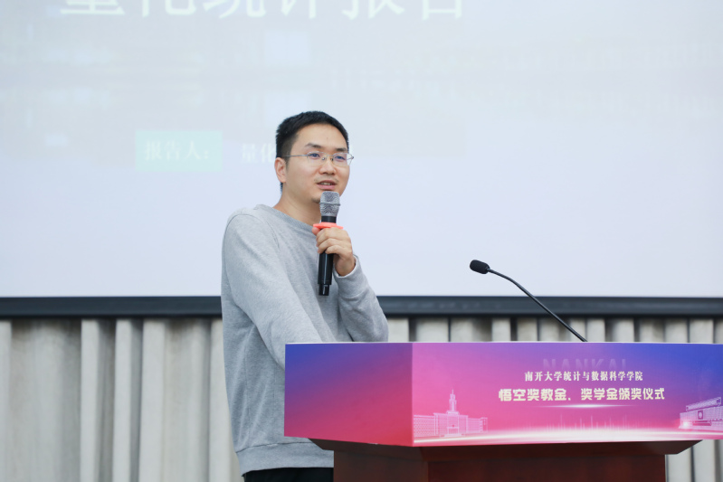获奖教师代表王龙敏、学生代表张义美分别发表了获奖感言。他们表示,非常感谢悟空投资管理有限公司以及鲍际刚校友对南开大学统计学科的关注和实际帮助,不遗余力地在物质与精神方面为师生提供支持和关心。作为南开的一份子,他们将会以这份奖励为新的起点,立足本职工作与学习,在专业领域继续深耕发展,为祖国的建设和南开的发展做出更大的贡献。
