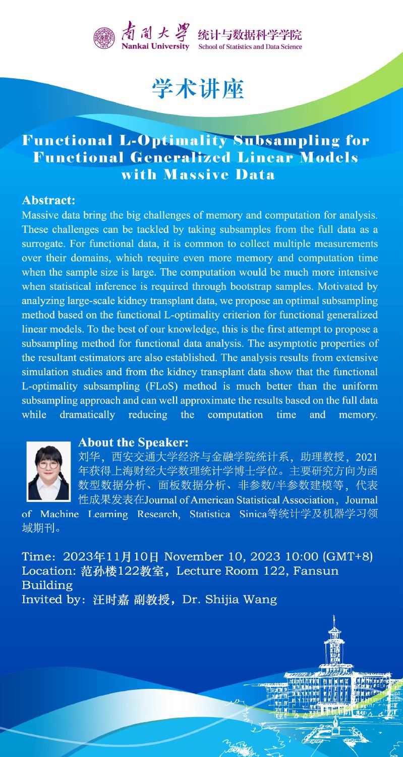 Functional L-Optimality Subsampling for Functional Generalized Linear Models with Massive Data(刘华)