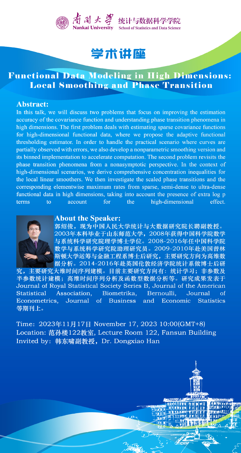 Functional Data Modeling in High Dimensions: Local Smoothing and Phase Transition(郭绍俊)
