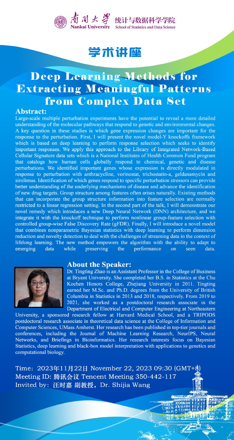 Deep Learning Methods for Extracting Meaningful Patterns from Complex Data Set(Tingting Zhao)
