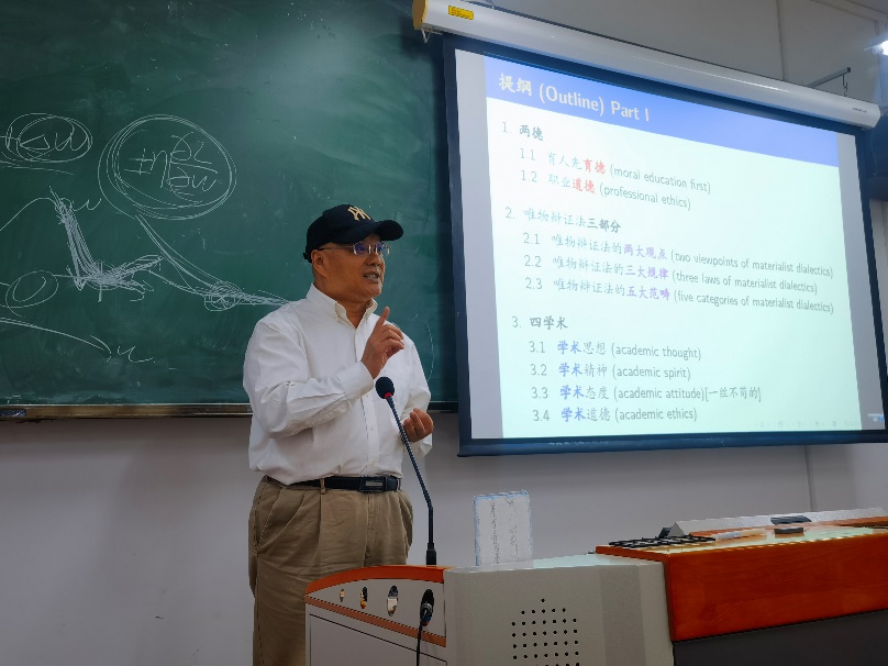 接下来,田国梁为学院专业教师们做了题为“课程思政元素的分类及《数理统计》课程思政的教学之探索”的分享。田国梁首先讲述了自己在美国的海外生活学习经历,归国之后继续深耕统计学领域。他表示无论在海外还是回到祖国,都始终对党和国家有着一颗赤诚热爱之心。谈及课程思政,田国梁为大家详细介绍了自己的思政分享内容提纲,并重点建议各位老师建立起一个自己的“思政元素库”,切实肩负起科研、教学和育人的责任。
