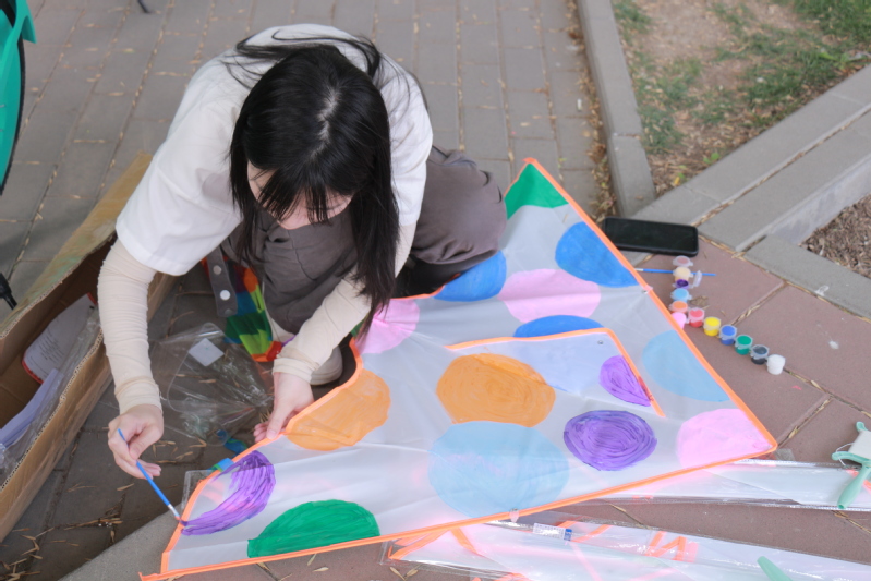 活动当天最引人注目的是由奈飞工厂 策划的DIY放风筝环节。该环节以其独特的创意性和参与性,成功吸引了同学们的关注与加入。活动前期,同学们通过报名,写下祝福留言,成功获得专属风筝。活动现场,同学们纷纷化身艺术家,用五彩斑斓的画笔在风筝上自由挥洒创意。从抽象图案到数学公式,从统计图表到几何图形,每一幅作品都独一无二,展现了个人风采。随后,同学们将这些承载着创意与梦想的风筝放飞,场面温馨而热烈,成为了春日里一道亮丽的风景线。