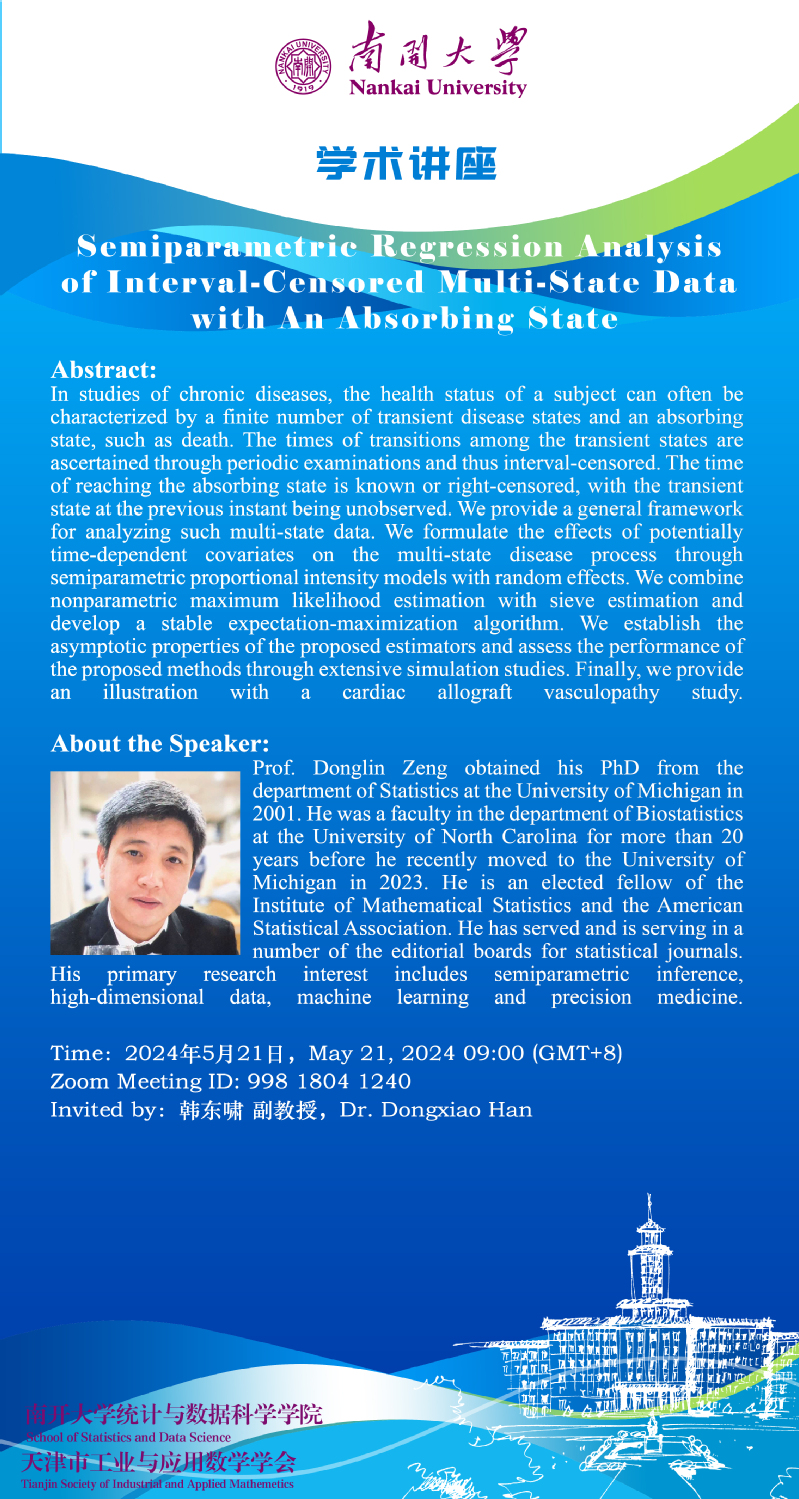 Semiparametric Regression Analysis of Interval-Censored Multi-State Data with An Absorbing State (Donglin Zeng)