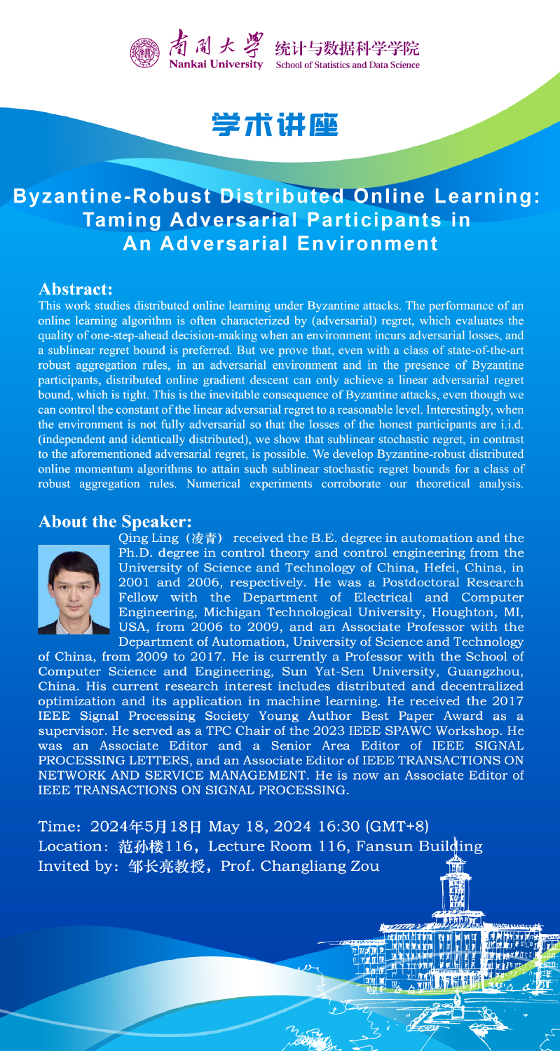 Byzantine-Robust Distributed Online Learning: Taming Adversarial Participants in An Adversarial Environment(凌青)