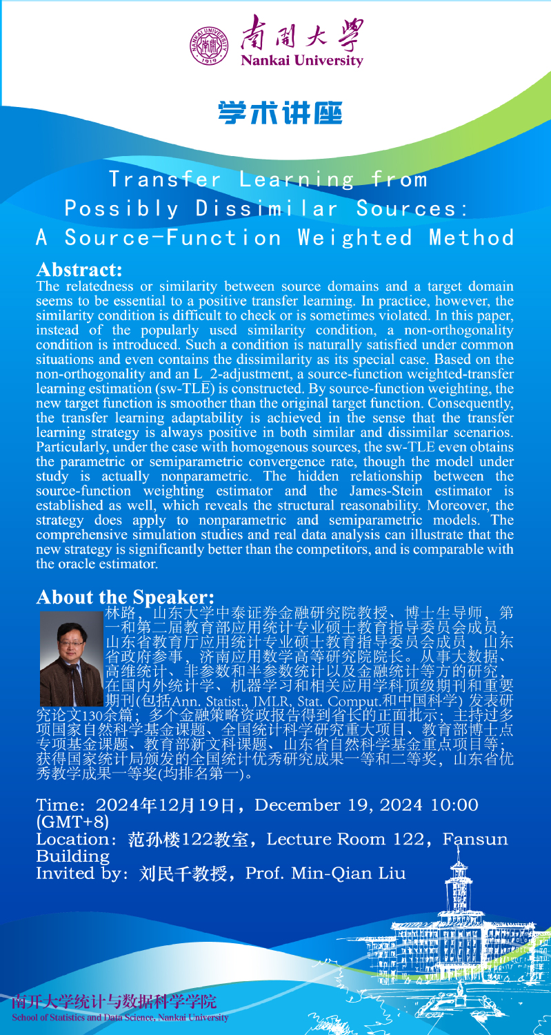 Transfer Learning from Possibly Dissimilar Sources: A Source-Function Weighted Method(林路)