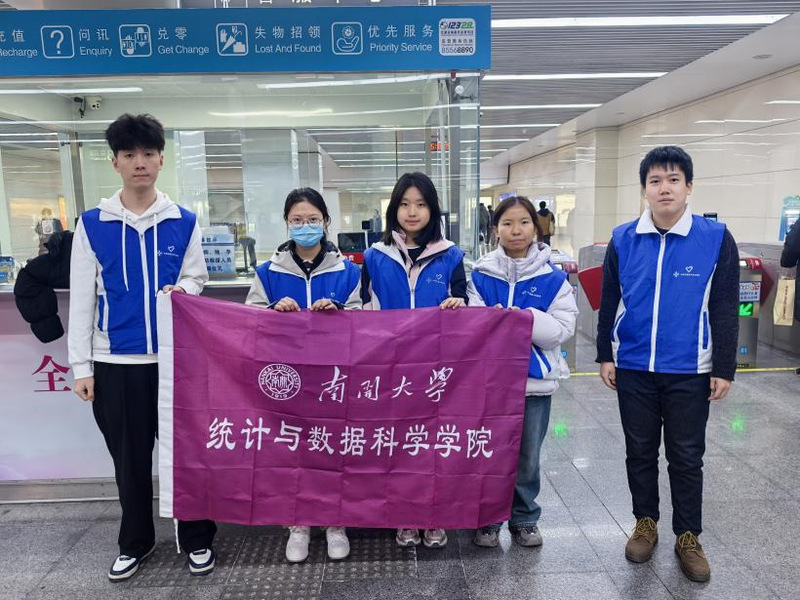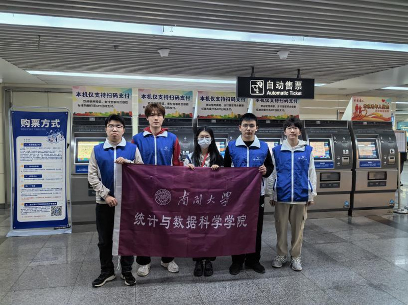 志愿者们依据地铁站布局迅速分工,投入到紧张而有序的服务中。负责路线指引的志愿者凭借对地铁线路的深入了解,为乘客精心规划从营口道站到目的地的便捷路线,耐心细致地解答每一个问询;在客流密集区域,疏导志愿者以规范的手势和清晰的指引,保障人流顺畅通行,有效避免了拥堵情况的发生;巡查志愿者则分散在站内各个关键位置,时刻留意站内动态,主动为有需要的乘客提供帮助。身着蓝马甲的志愿者们配合默契,从路线指引到服务礼仪,每一个细节都展现出南开统计学子认真负责的态度和积极奉献的精神。
