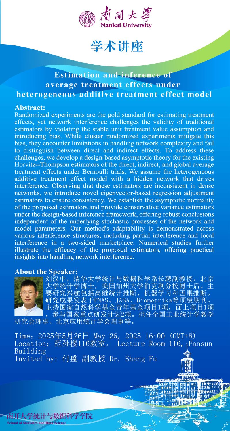 Estimation and inference of average treatment effects under heterogeneous additive treatment effect model(刘汉中)