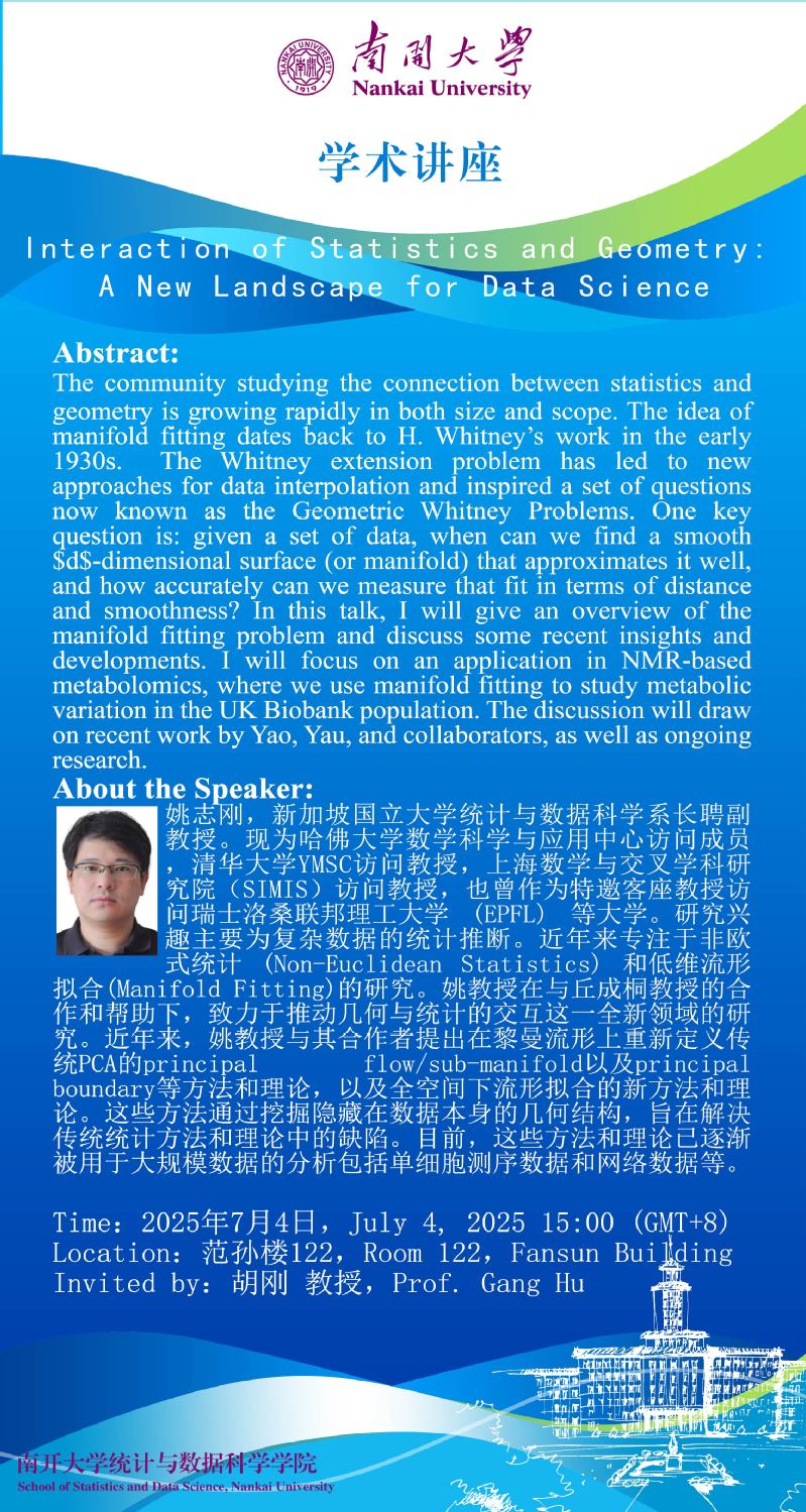 Interaction of Statistics and Geometry: A New Landscape for Data Science(姚志刚)