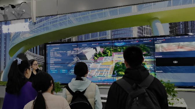 同学们还参观了华为的模块化机房,这里是数字世界的“坚强心脏”。机房集IT机柜、制冷、UPS不间断电源等模块为一体,展现出高度的集成化和智能化特点。面对这些支撑着日常数字生活的关键基础设施,同学们对此表现出浓厚兴趣,围绕机房设计、能耗管理等话题展开了热烈讨论。