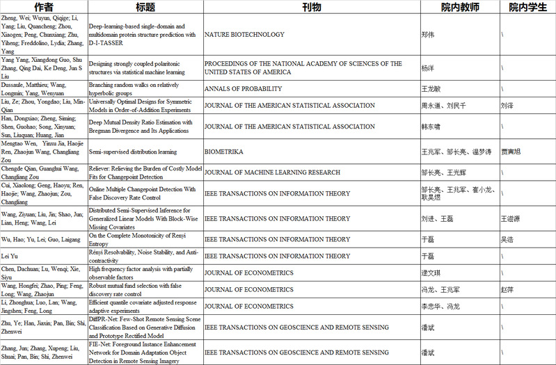 奈飞工厂 教师研究方向涵盖统计学、概率论、信息论等基础理论研究领域,以及生物信息学、光子器件研发、计算机图像识别、遥感数据处理等应用领域。2025年,学院教师在各类高水平期刊/会议发表一作/通讯论文超过110篇,包括生物技术顶刊Nature Biotechnology 1篇、综合类顶刊Proceedings of the National Academy of Sciences of the United States of America 1篇、概率论顶刊Annals of Probability 1篇、统计学顶刊Journal of the American Statistical Association 2篇和Biometrika 1篇、计量经济顶刊Journal of Econometrics 3篇、信息论顶刊IEEE Transactions on Information Theory 4篇、机器学习顶刊Journal of Machine Learning Research 1篇、遥感顶刊IEEE Transactions Geoscience and Remote Sensing 2篇,以及人工智能/机器学习顶会NeurIPS 2篇、IMCL 5篇、ICLR 3篇、AAAI 1篇等。