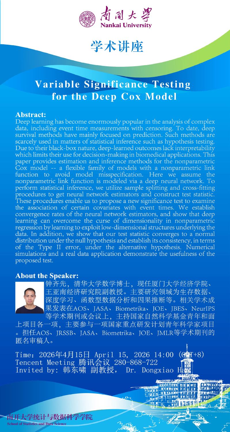 Variable Significance Testing for the Deep Cox Model(钟齐先)